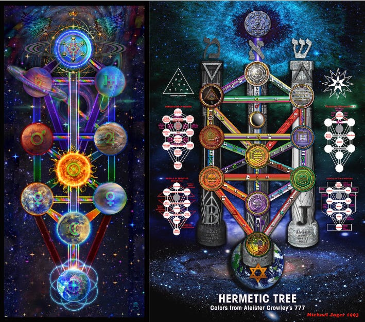 There are hours of lectures by famous occult astrologer and philosopher Manly P. Hall regarding the secret planetary powers of unseen forces in relation to the ancient Pagan gods. The ultimate Luciferian goal of mankind is to achieve total enlightenment and ascend back to his original cosmic home in the stars. The Sefirot of the Kabbalah is a demonic mimicry of the Ladder of Divine Ascent, with man ascending the celestial spheres, guided by gnosis in place of spiritual struggle in Christ. It’s what Hermes’ Poimandres describes as the ascension of the soul through the heavenly spheres.