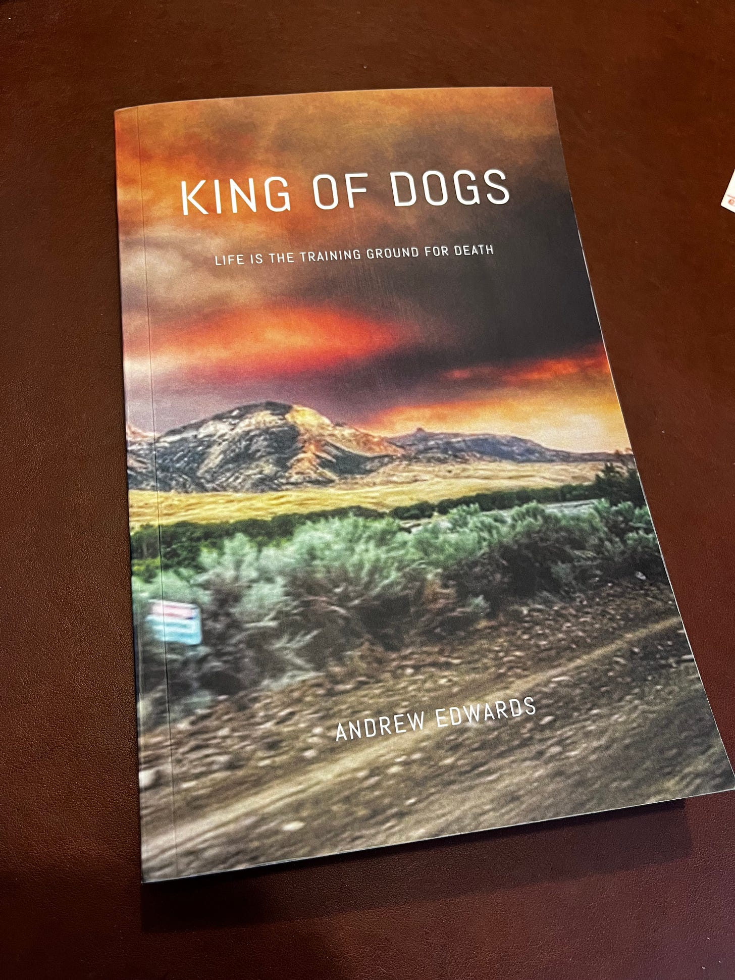 King of Dogs is a hyper-masculine action novel that takes place in a pre-apocalyptic desert landscape of Moab, Utah after the collapse and moral decay of America. The main character, Grayson, is an Orthodox Christian described as “a warrior and philosopher but legitimately neither.”